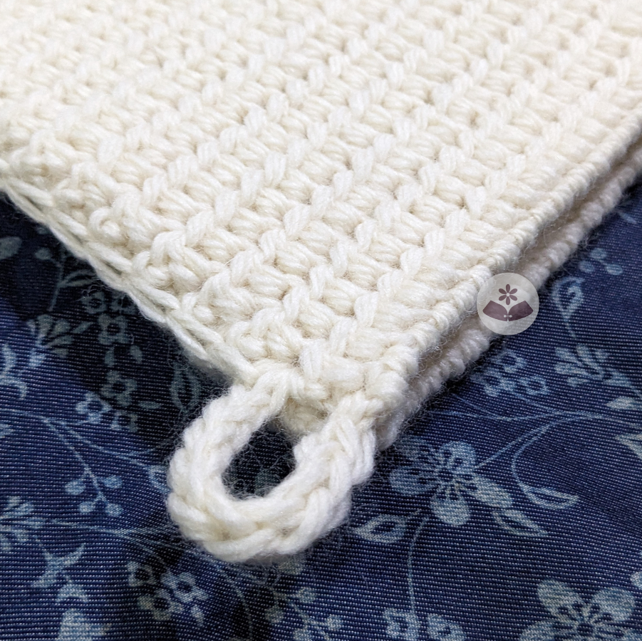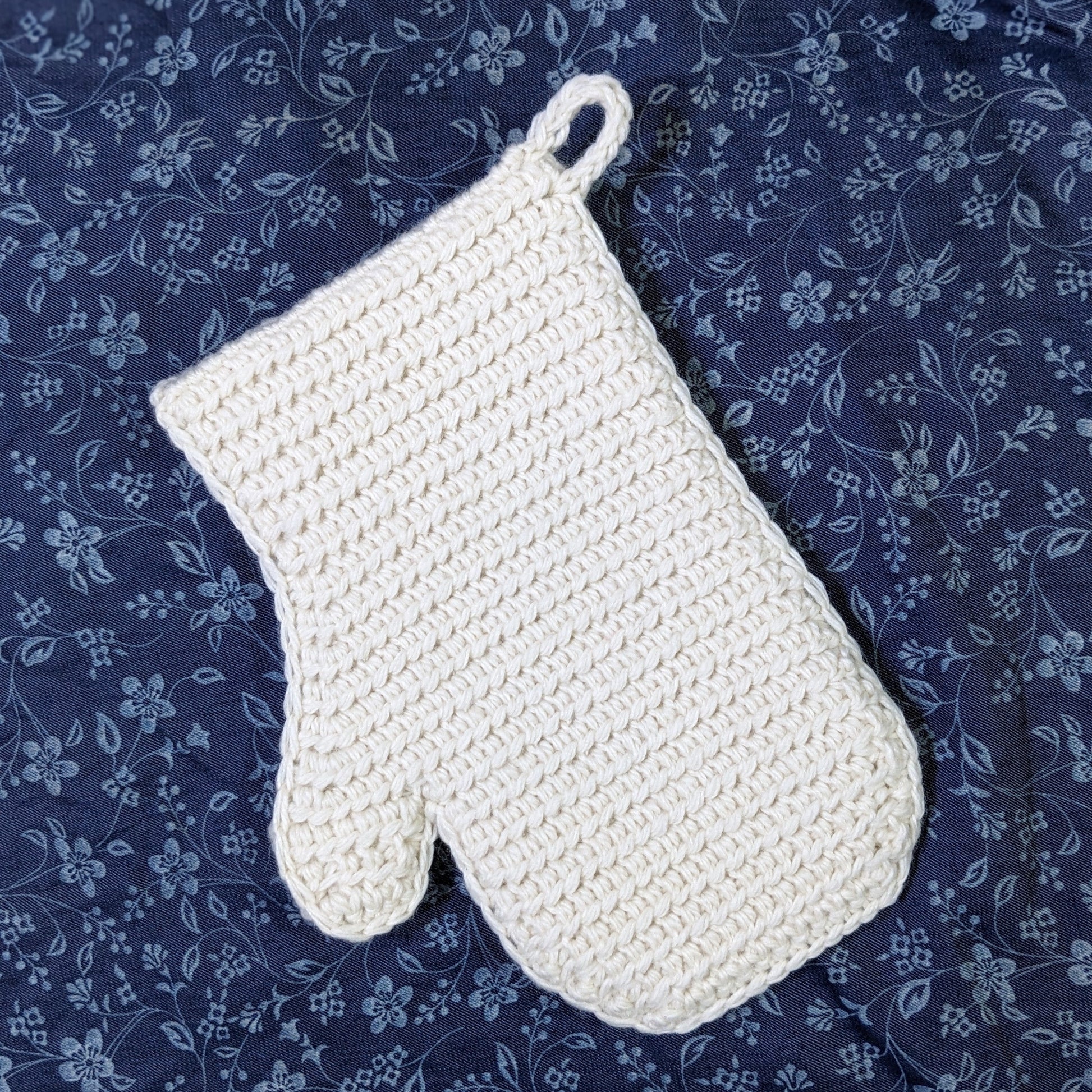 Budding is a practical oven mitt with a cute budding thumb outline, made up of a special technique called thermal stitch, with a strong crochet cord ring. The finished piece is thick and rigid.